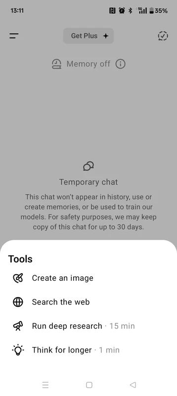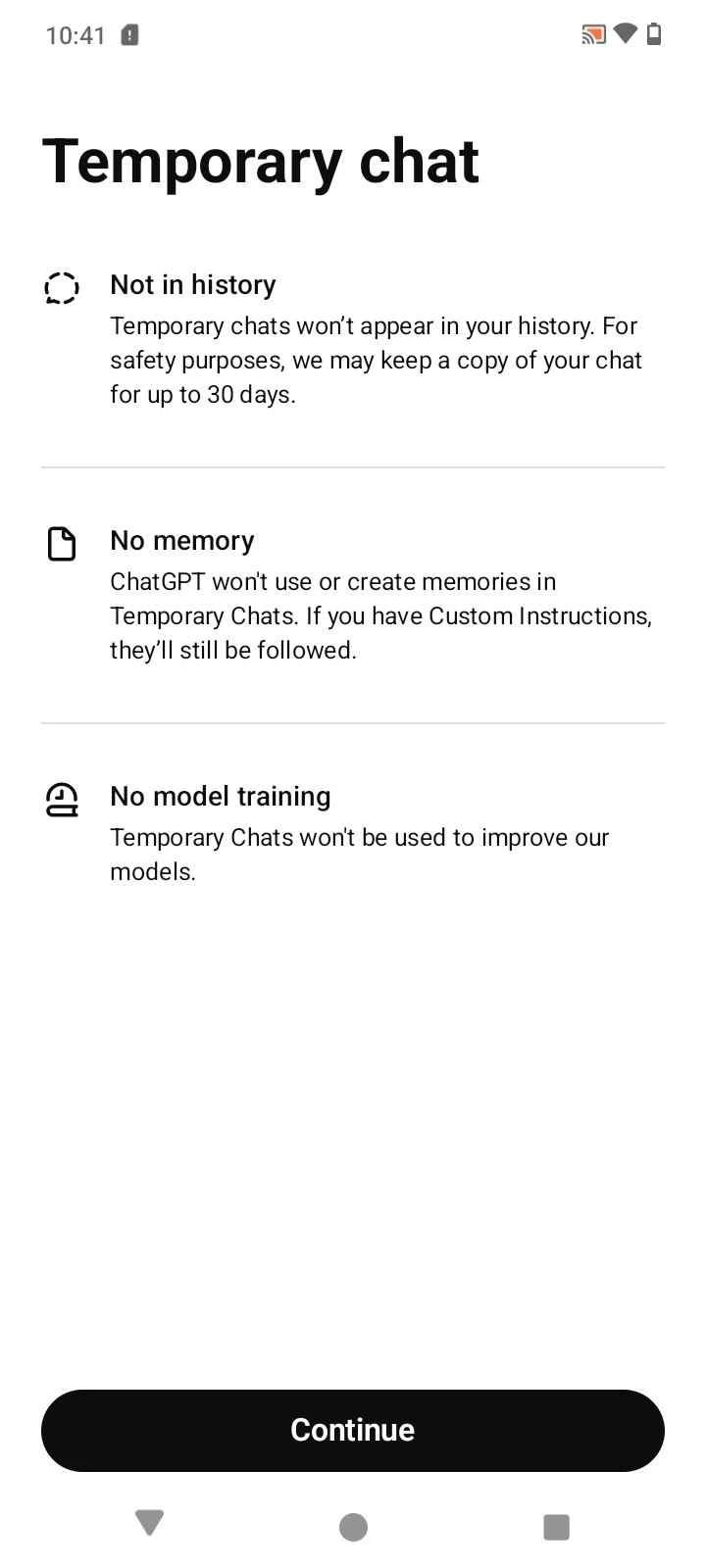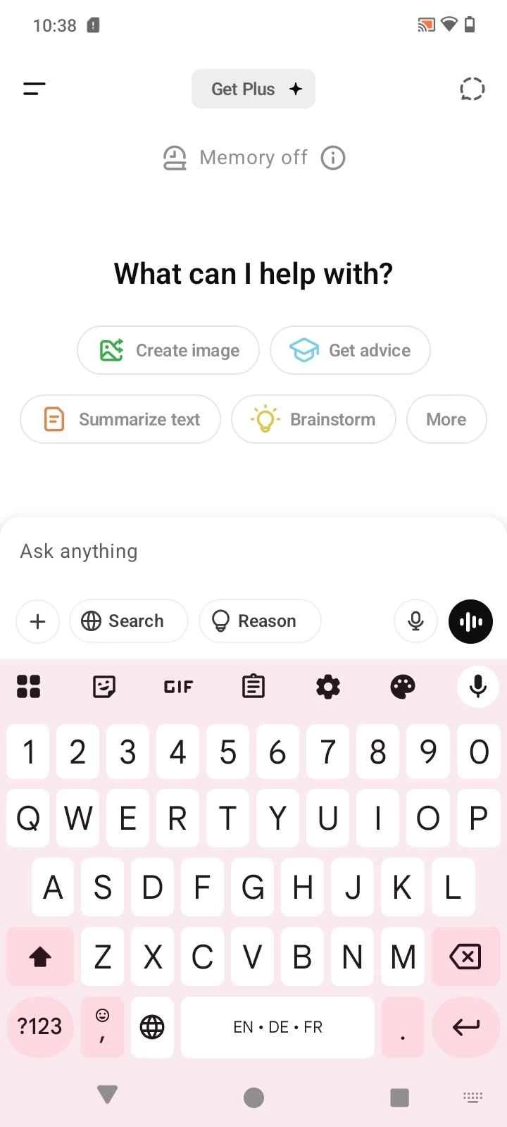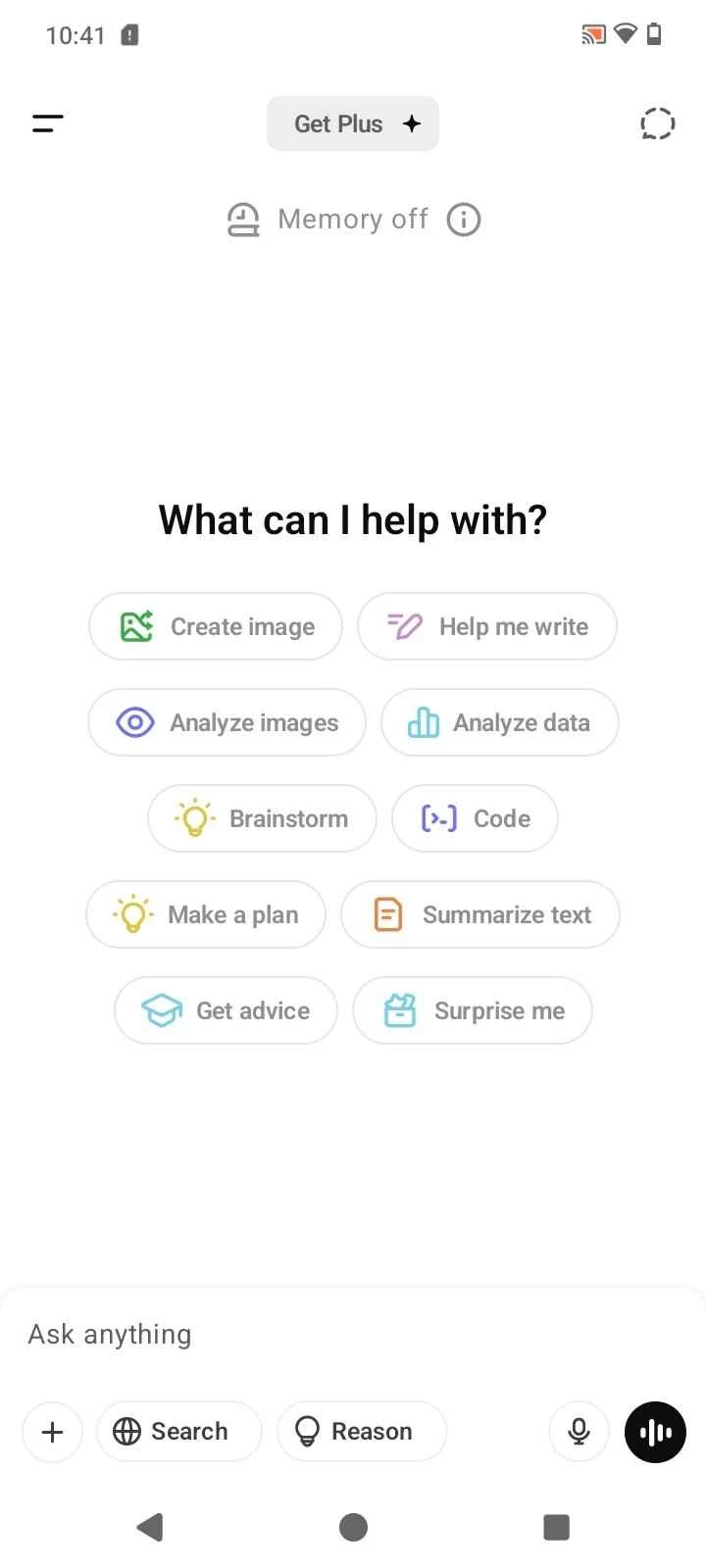 يمكنك تنزيل وتثبيت ChatGPT من الموقع الرسمي، متجر جوجل بلاي ، أو ببساطة بالنقر على زر "تنزيل" في الصفحة. شغّل التطبيق بالنقر على الأيقونة التي تظهر على شاشتك الرئيسية، وأكمل عملية تسجيل الدخول باستخدام حساب جوجل الخاص بك، أو أنشئ حسابًا جديدًا. ستنتقل إلى الشاشة الرئيسية مع مربع نص في منتصفها. هناك ثلاث طرق لإدخال استفساراتك: